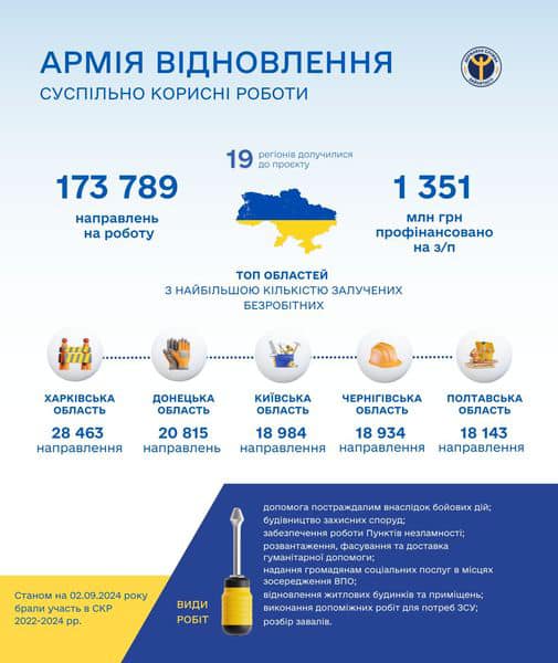 «Армія відновлення»: на суспільно корисні роботи вже видано 173 789 направлень