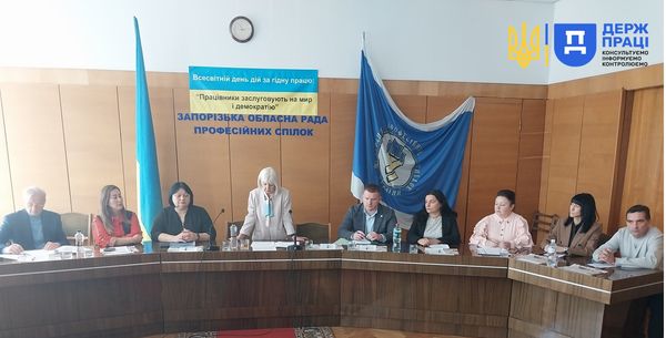 Ішлося про те, що гідна праця повинна забезпечувати справедливий заробіток, безпеку на робочому місці та соціальний захист працівників і членів їхніх сімей, сприяти соціальній інтеграції працівників, давати їм свободу висловлювати свої погляди, гарантувати рівне ставлення та рівні можливості для всіх і кожного. Начальник управління інспекційної діяльності у Запорізькій області Андрій Адамчук у своєму виступі нагадав, що в нинішніх умовах заходи державного нагляду представники Державної служби з питань праці проводять за скаргами працівників, і запропонував профспілкам долучатися, адже в них є власні можливості. Крім того, він звернув увагу на залежність продуктивності й безпеки праці від ментального здоров’я працівників і наголосив на необхідності запровадження програм психосоціальної підтримки на робочих місцях.